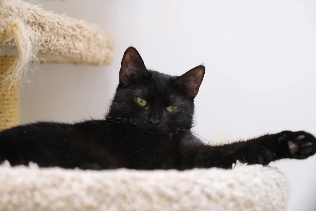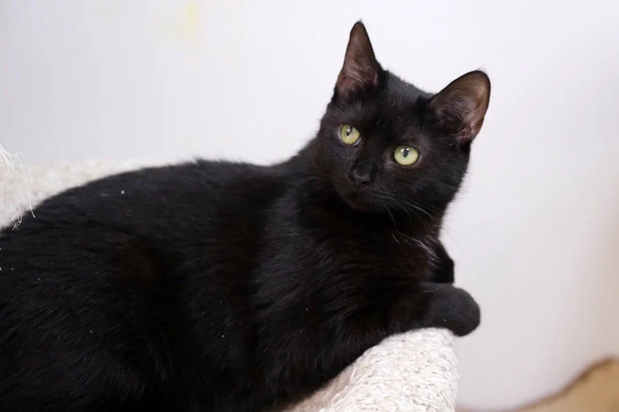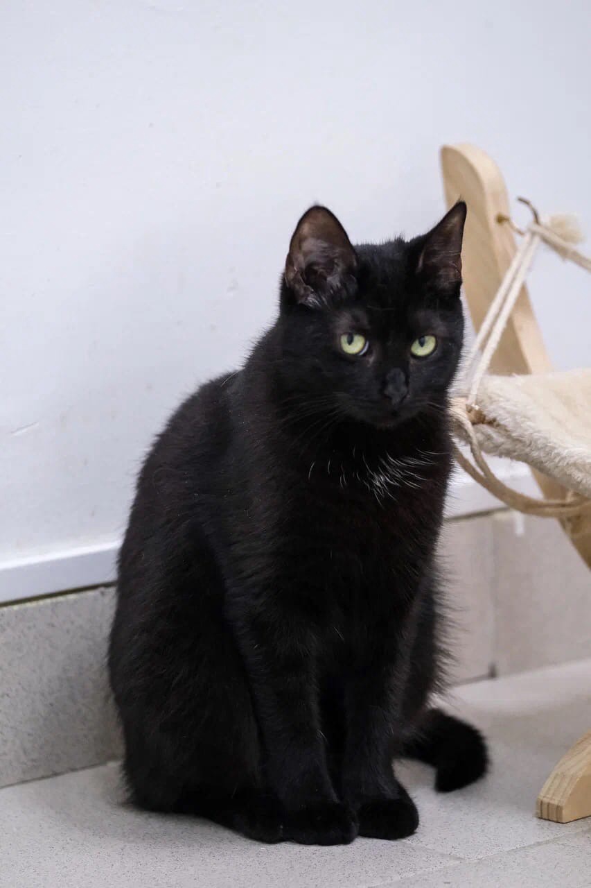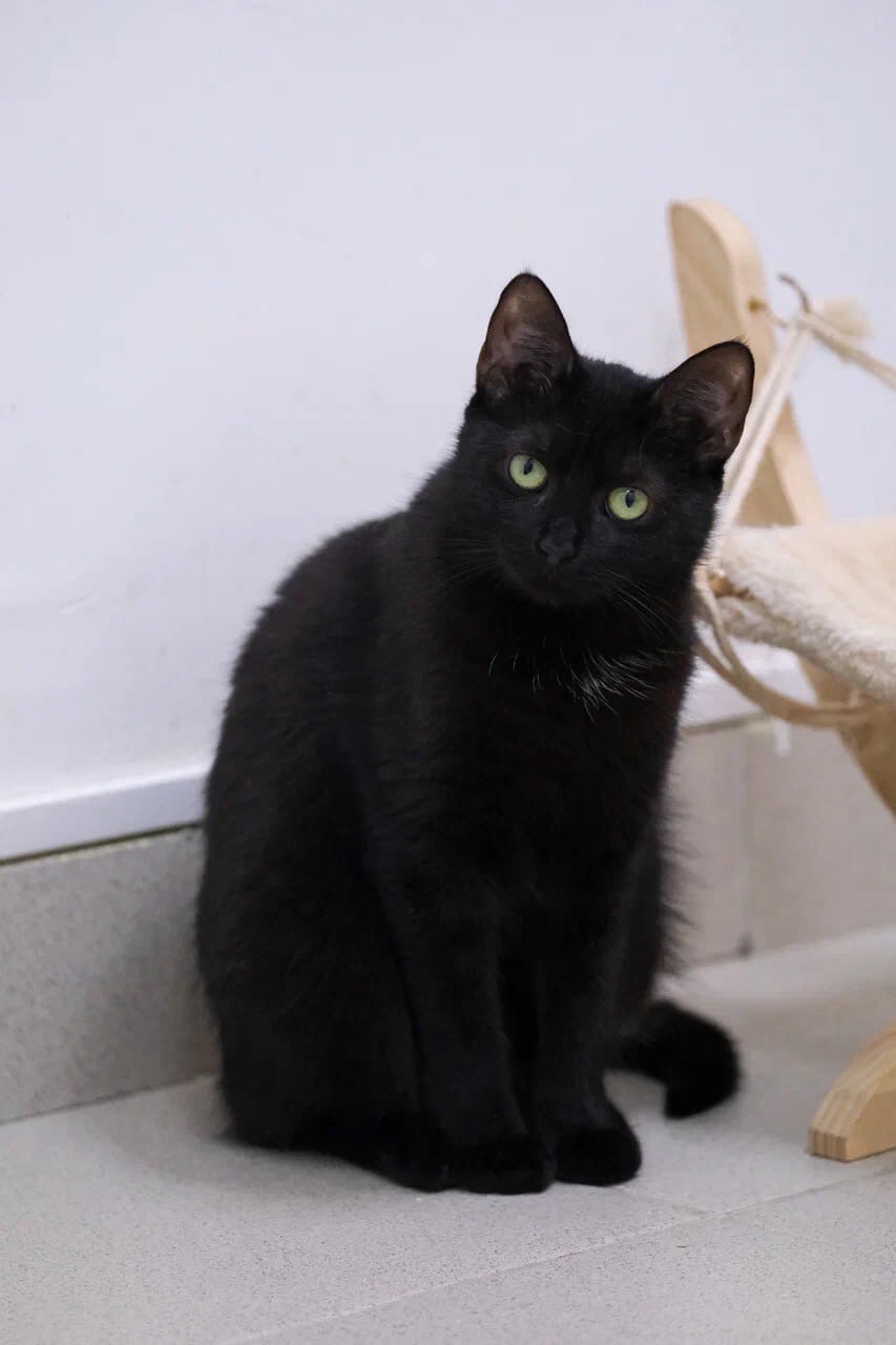 Graceful, elegant, and a bit mysterious—that’s how she appears to those who see her for the first time. Chernichka watches visitors intently with her thoughtful gaze. One can’t help but feel the urge to explain the reason for their visit to her. But there’s no need to worry; it's just a façade. Before us is a truly modest girl. She will quietly approach a visitor and gently touch them with her paw, greeting them with a shy yet affectionate gesture. She longs for companionship! Her caution is simply due to the fact that her interactions with people have been too few in her life. Once she finds an owner who understands that the bond between a cat and a human can be delightful, joyful, and filled with happiness, Chernichka will transform into the most charming animal. All the tenderness and love that this girl possesses will be devoted entirely to her family.