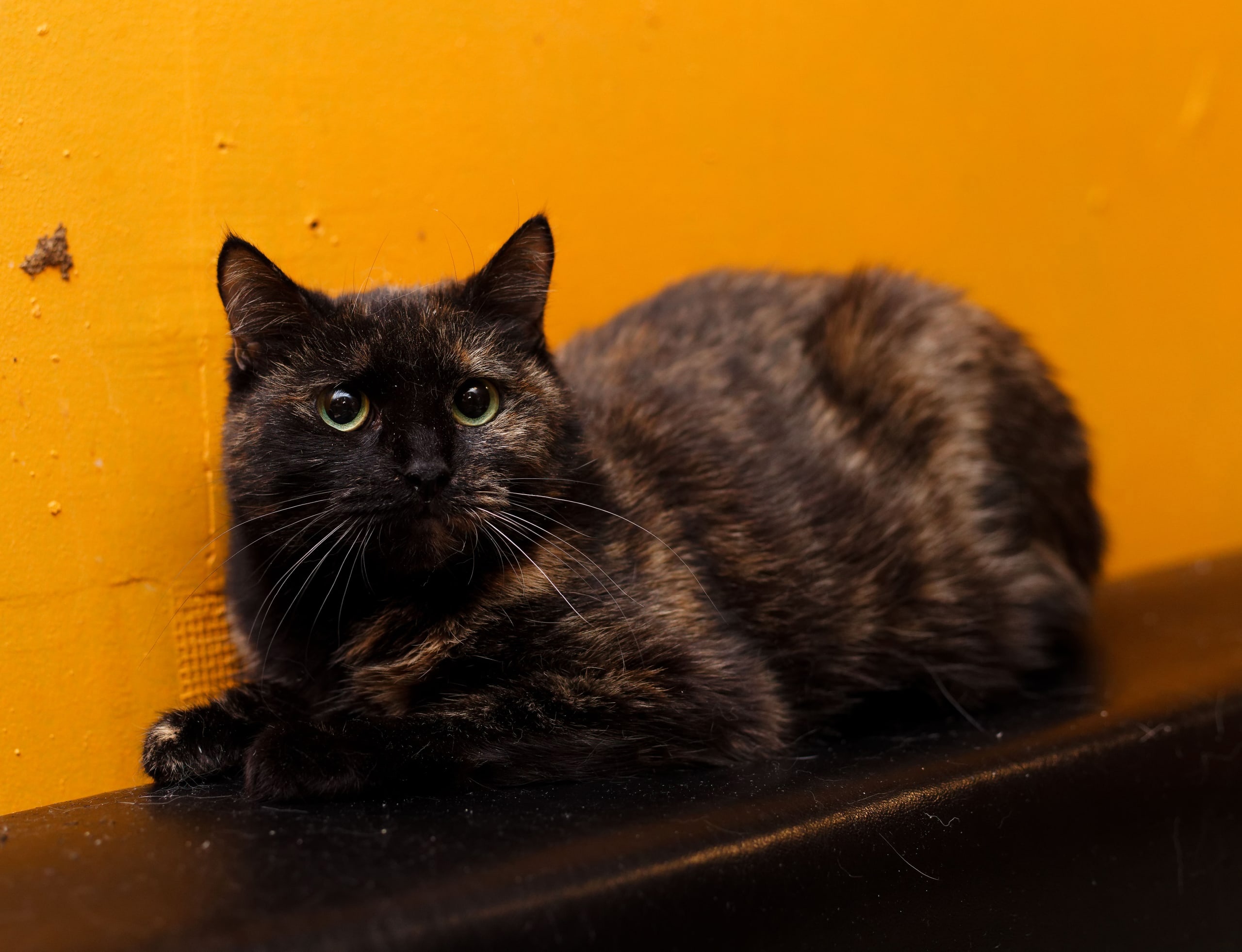 Молодая Мишель появилась на месте, где подкармливали одного бездомного котика. Лето она провела там, а зимой прибилась на завод, который находился рядом. Уж очень кошка была хрупка для уличной жизни и люди попросили пристроить Мишель на передержку. Мишель заметили и забрали в семью, но совсем ненадолго. Мишель ещё не успела адаптироваться, а её уже вернули назад, мотивируя тем, что кошечка боится шума воды и от этого паникует. Теперь Мишелька снова в ожидании любящей, заботливой и внимательной семьи, готовой дать её время на адаптацию.